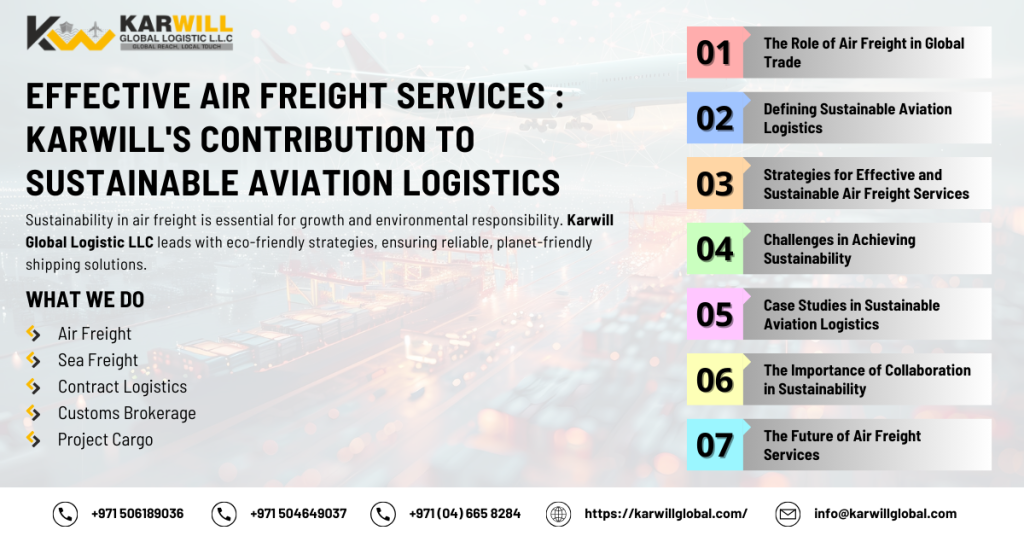 Sustainability in air freight logistics is not just a trend—it is a necessity for businesses committed to long-term growth and environmental responsibility. Karwill Global Logistic LLC exemplifies how innovative strategies, and eco-friendly practices can transform air freight operations, offering businesses an opportunity to thrive while protecting the planet.